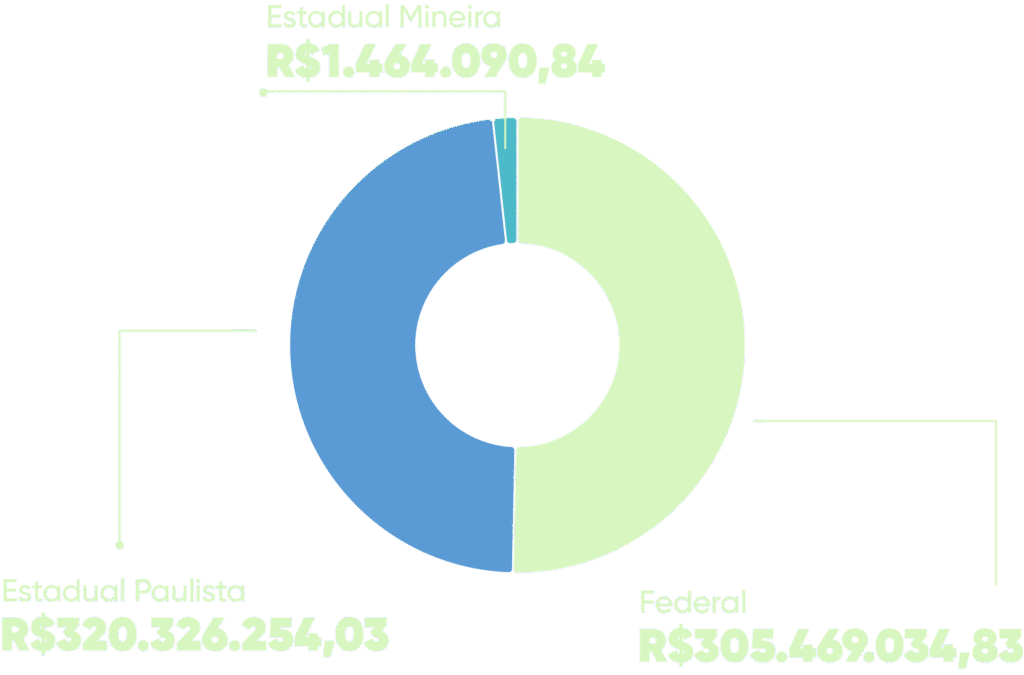 * Em razão da alteração na metodologia de cobrança pelo uso da água em rios de domínio Federal, não há dados de valores arrecadados por setor de usuários para a Cobrança PCJ Federal no ano de 2024.