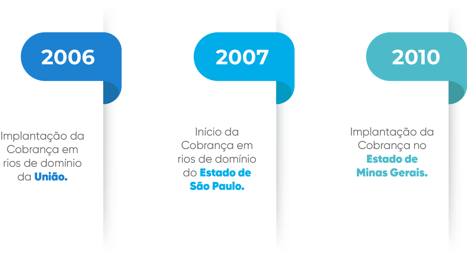 No âmbito das Bacias PCJ, a implementação da cobrança pelo uso dos recursos hídricos teve início em 2006, em rios de domínio da União. No ano seguinte, o estado de São Paulo implementou a referida cobrança em rios de seu domínio e, em 2010, foi a vez do estado de Minas Gerais em rios de seu domínio.