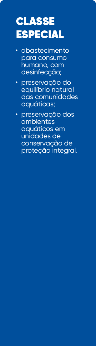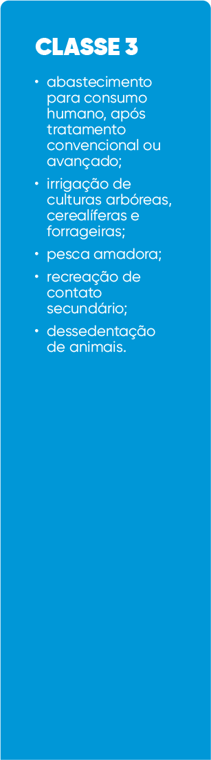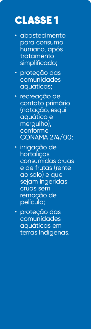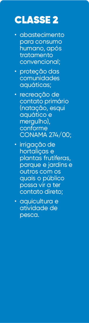 Classe de qualidade é o conjunto de condições e padrões de qualidade de água necessários ao atendimento dos usos preponderantes atuais e futuros.