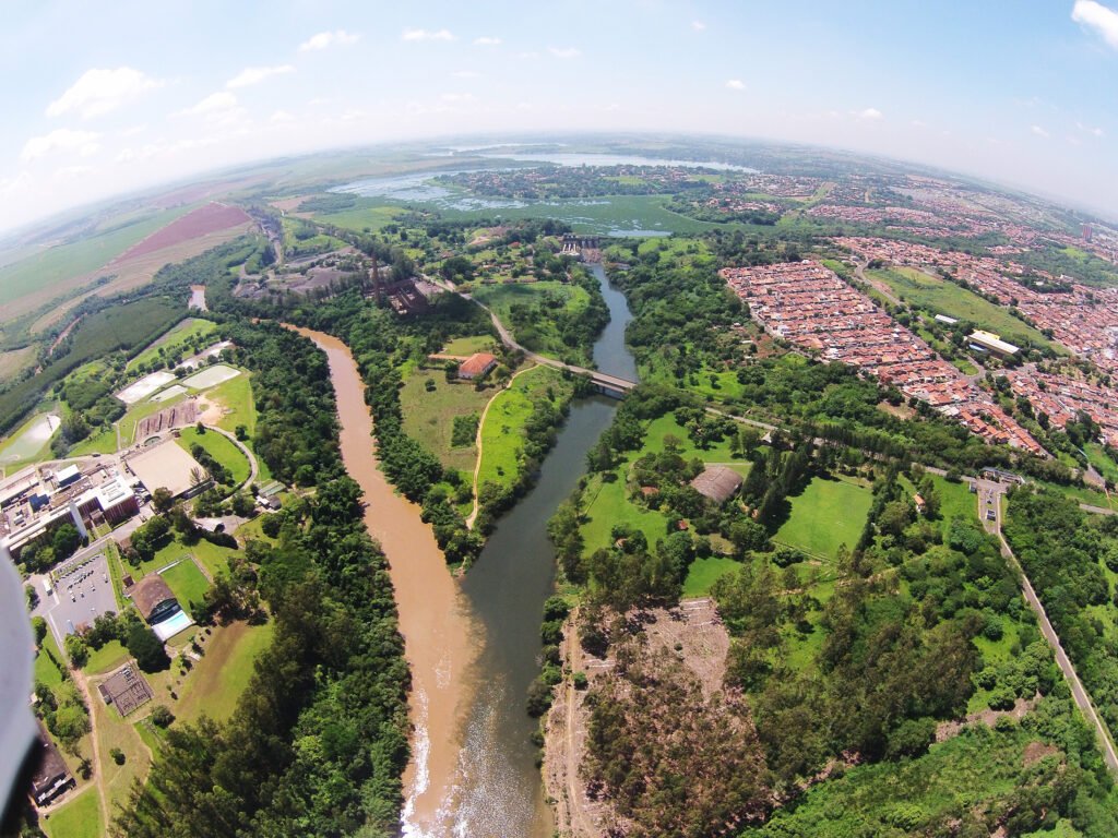 Formação do Rio Piracicaba, a partir da junção dos rios Atibaia e Jaguari — Americana/SP. Fonte: Acervo da Agência das Bacias PCJ, 2016.