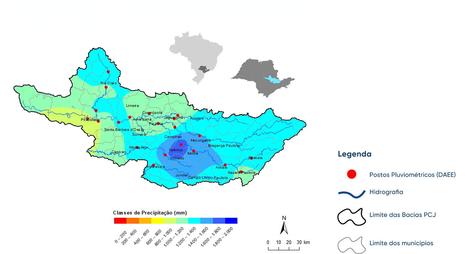Este mapa apresenta os pontos de medição hidrológica das Bacias PCJ, elaborados pelo SSD-PCJ.
